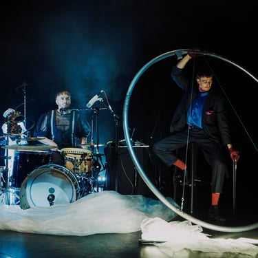 Two artists, two Cyr wheels and loads of drums. OPA FASHION is a hybrid circus performance rich in unique instrument inventions, technological wonders, vocals and dance. In this project, traditional folk music and contemporary circus converge in a boundless exploration of brotherhood's telepathy. Combining their differences and refined talents into a mesmerising performance of playful improvisation, and intense physical presence, with tasteful visuals and clothing. All coloured by a mutual traditional heritage, shaped by growing up together as siblings in a family of six, in the countryside of Sweden.